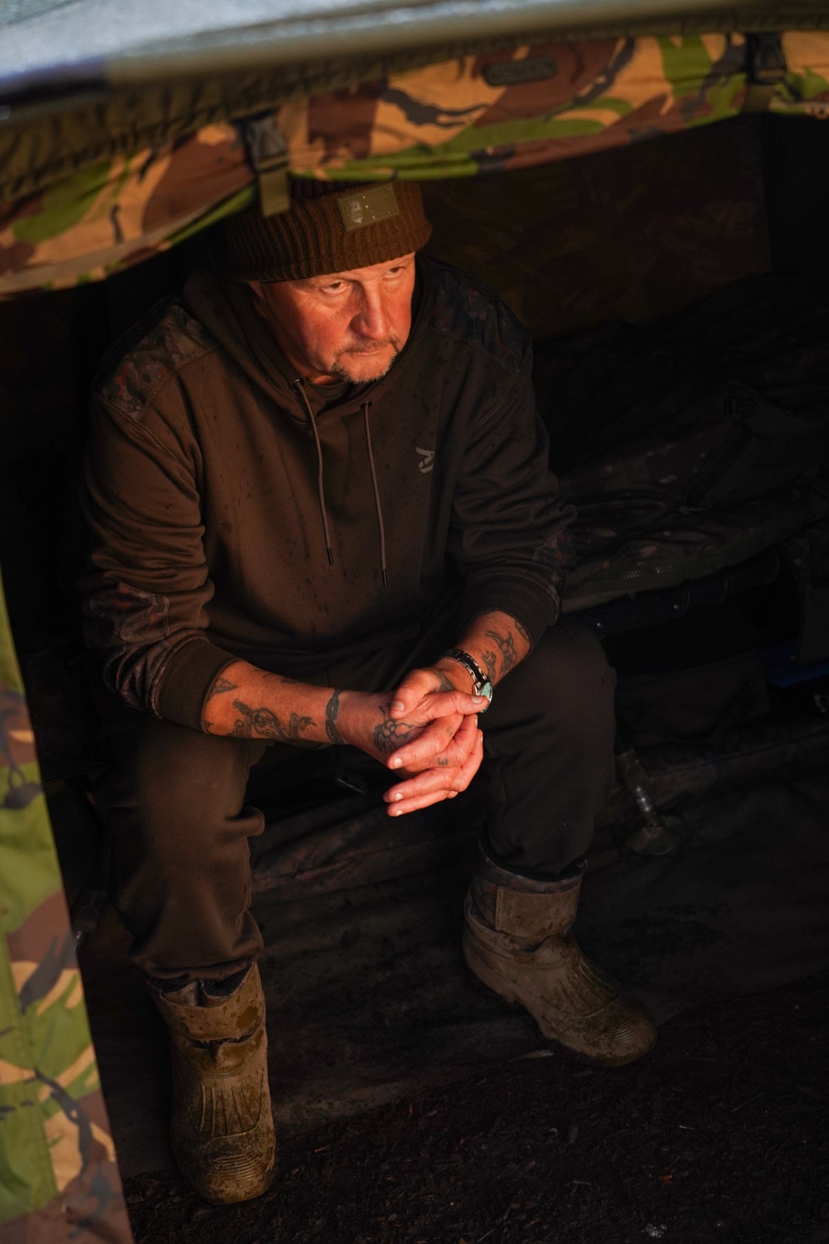 Fabric composition is only half the story. What really matters is the feel and we spent months cycling through swatches, densities and finishes to find the perfect balance of luxury comfort and outdoor resilience. This is clothing built for real angling life: long sessions, changing weather, kneeling in mud and even the odd splash of fish slime.