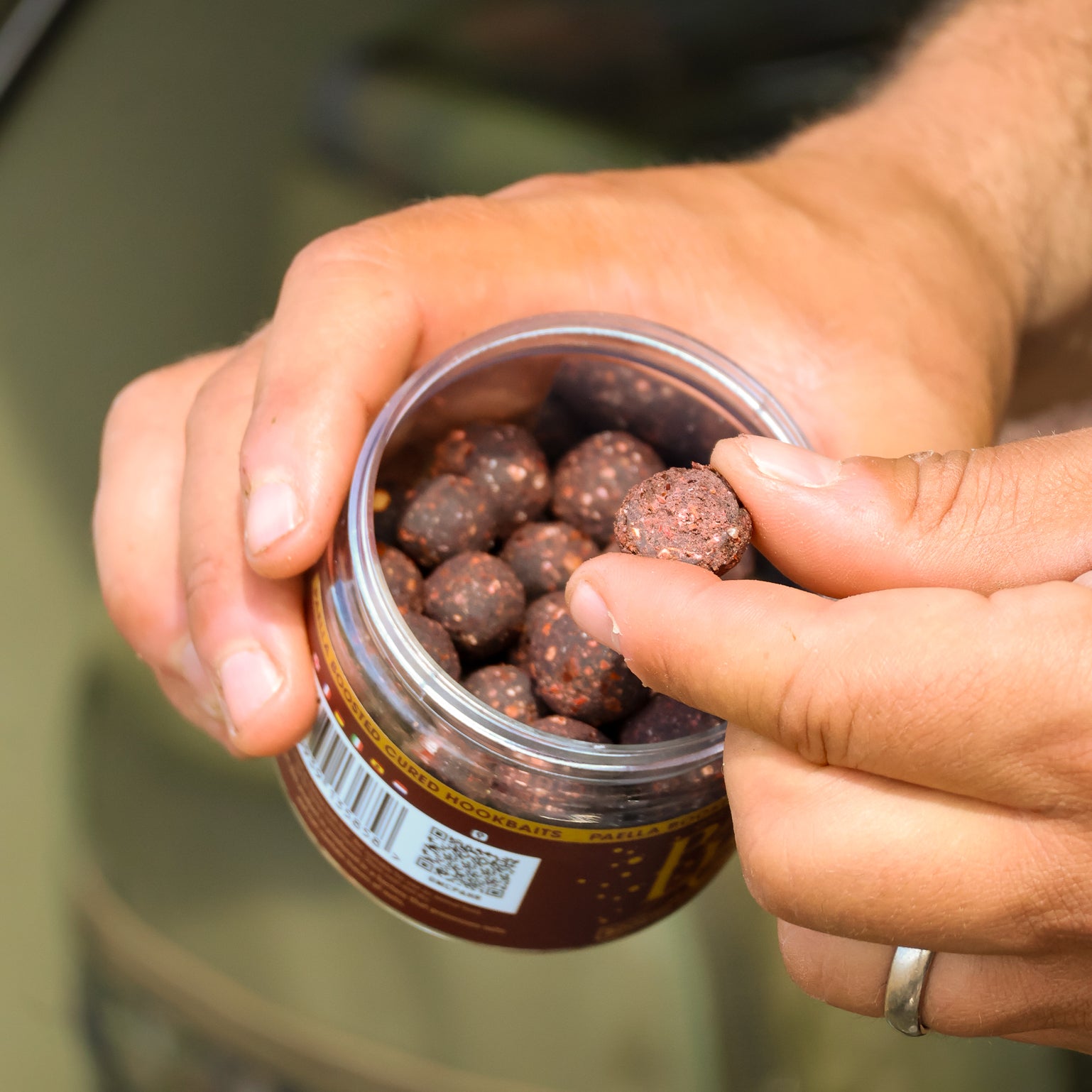 A CURED EXPLODING SOLUBLE CRUST with a Hardened Inner Boilie that creates the most magnificent Match the Hatch Round Bottom Bait to complement the Paella Meaty & Fishy TWISTED Super Boosted Hookbait Collection.